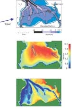In complex situations like this we need to use sophisticated computer models; it is not realistic to rely on simple relationships between wave growth and fetch. Models can be used to map variations in wave forces and sediment re-suspension, and to test the effects of different wind conditions (e.g., predicting the effects of waves during extreme weather events). These models can greatly improve our ability to predict and manage changes in our coastal environment.