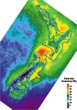 Fig. 1: Average percentage of clear skies over New Zealand recorded by satellite.