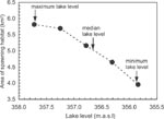 The results showed that the total area of smelt spawning habitat did not decline much as the lake level dropped from its maximum level to 50 cm below this, but after that it declined steadily, and at the minimum lake level was reduced by about 30%.