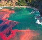 Members of the public also reported several patches of red surface discoloration. We found that most of these visible blooms were dominated by Noctiluca scintillans, a harmless, non-photosynthetic dinoflagellate species of alga. Noctiluca was not immune to the October 2002 toxic outbreaks, and the organisms died after ingesting cells of Karenia species.