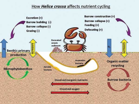 - The burrows introduce oxygen into the sediments, affecting the nutrient cycle and the amount of primary production.