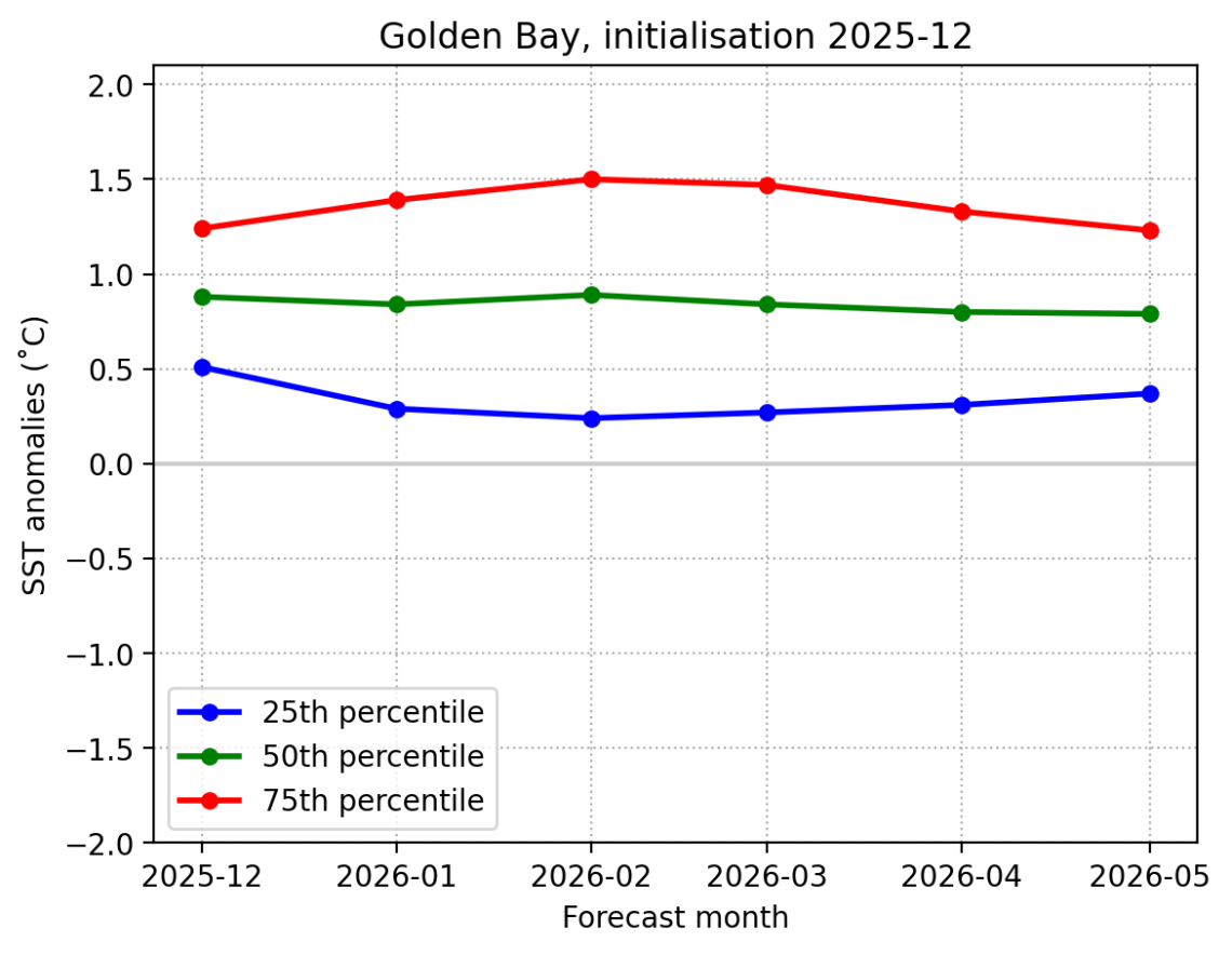 Forecast Golden Bay SST anomalies (˚C) over the next 6 months