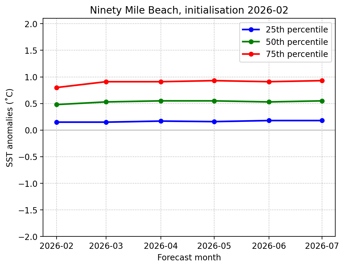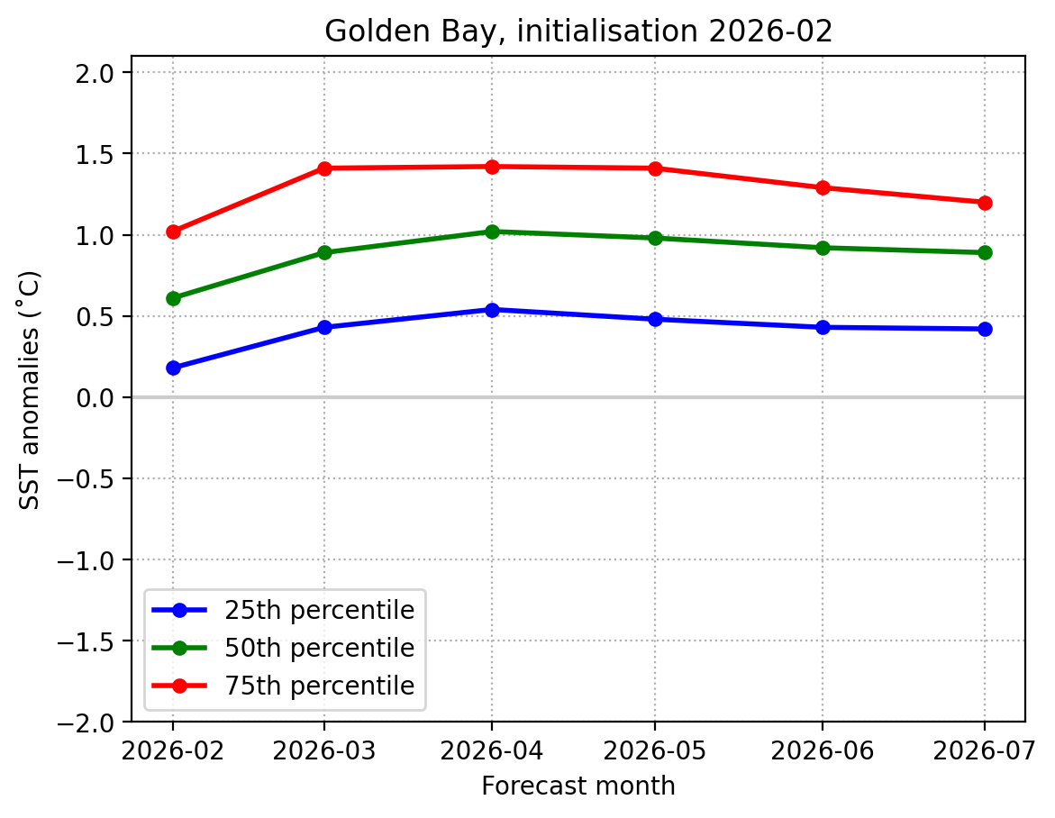 Forecast Golden Bay SST anomalies (˚C) over the next 6 months