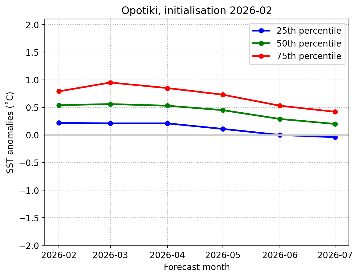 Forecast Opotiki SST anomalies (˚C) over the next 6 months