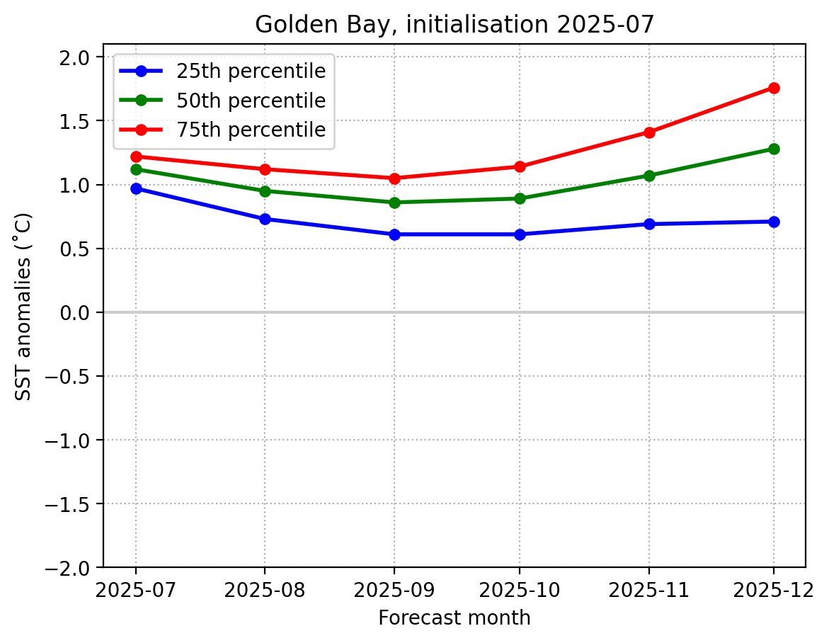 Forecast Golden Bay SST anomalies (˚C) over the next 6 months