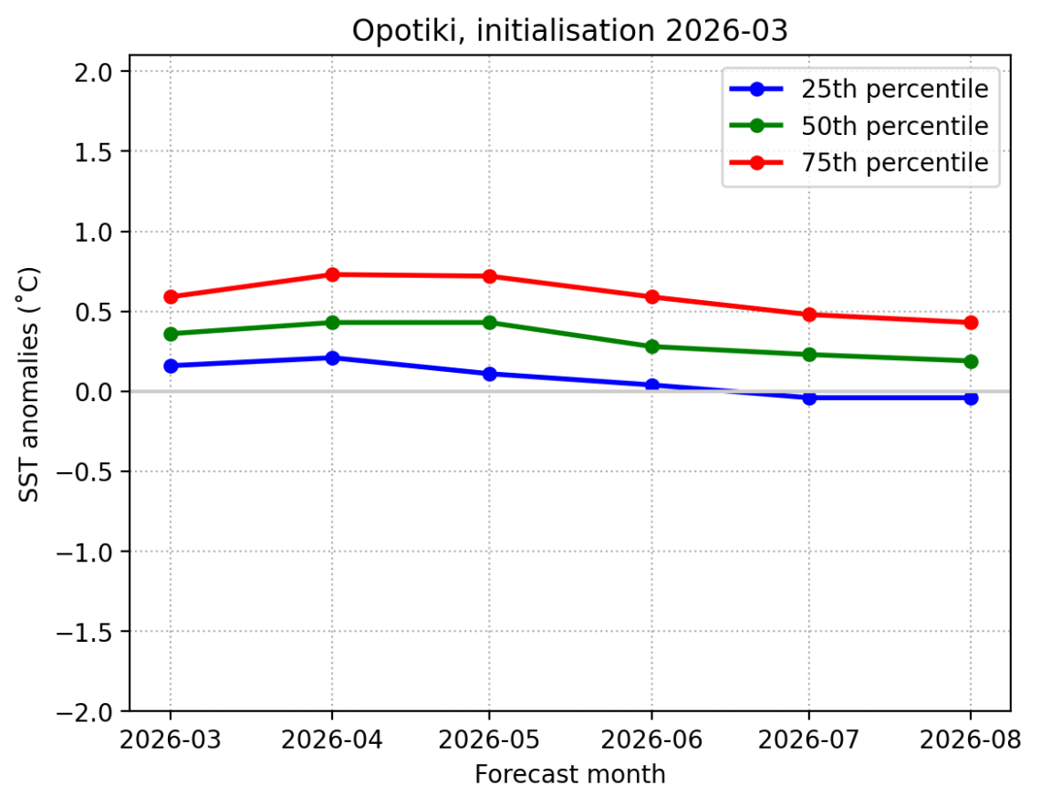Forecast Opotiki SST anomalies (˚C) over the next 6 months