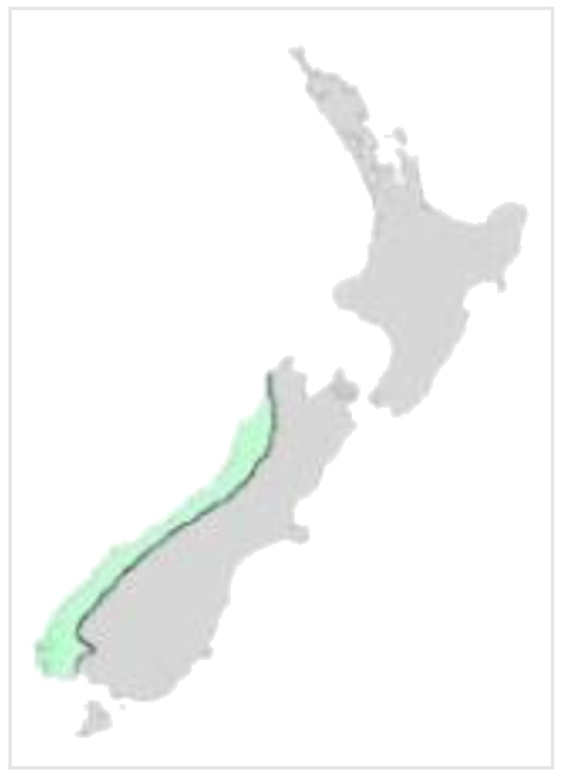 The climate of this area is greatly dependent on its exposure to weather systems from the Tasman Sea and the lie of the Southern Alps to the east.