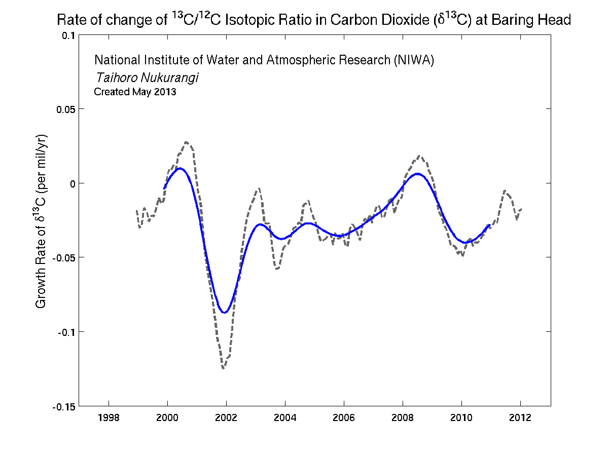 13CO2 growth rate at Baring Head May 2013