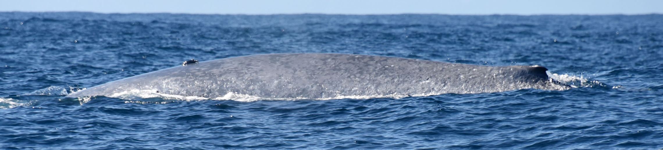 The left flank of one of the two blue whales tagged with a satellite tag, located near Westport, South Island, on 9 February 2018.
