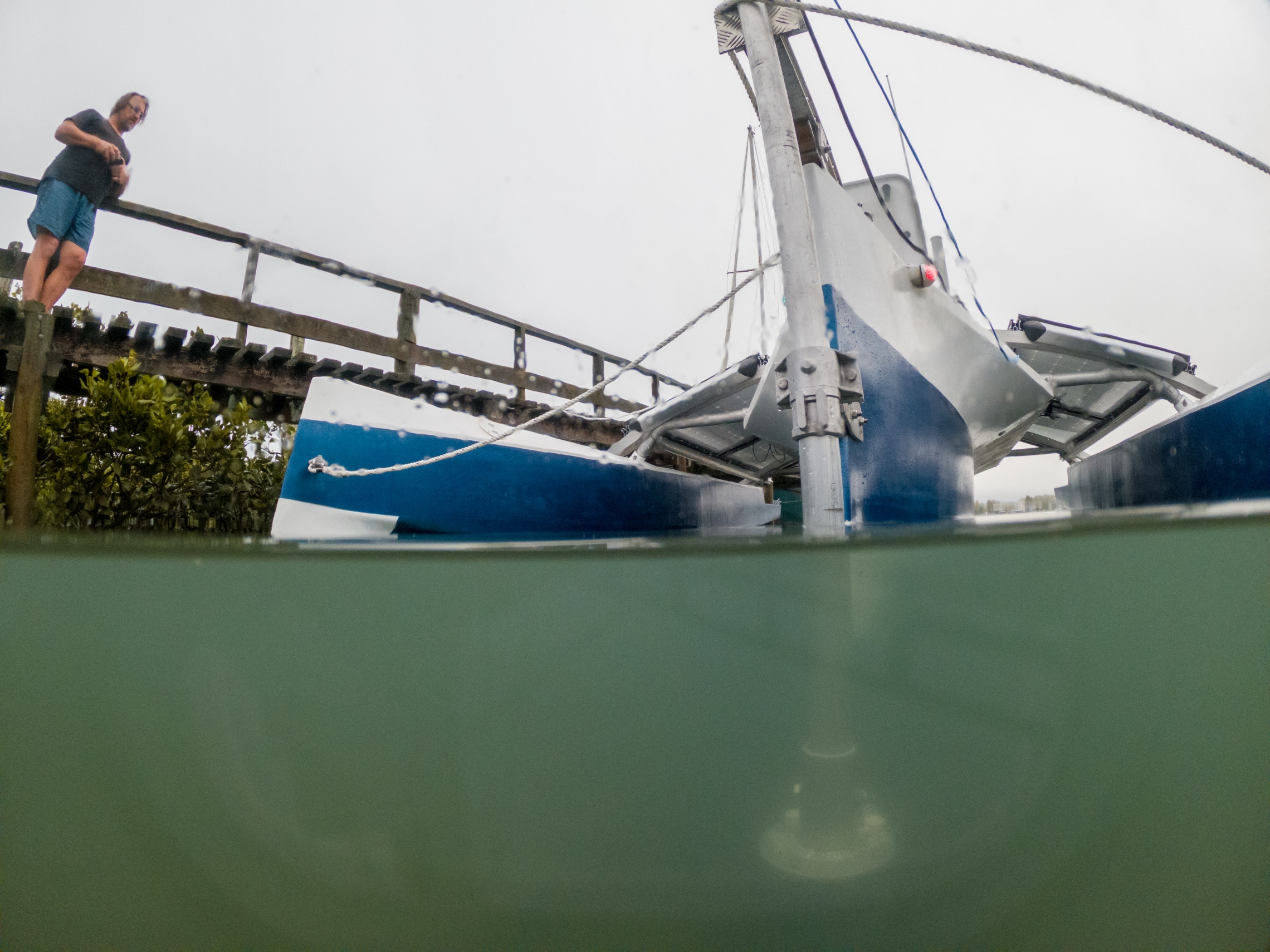 This Proteus is designed as a marine version of the Swiss army knife. It is a stand-alone system that provides solutions to multiple challenges. Here, you can see the echosounder that has been fitted on by NIWA scientists at the bow of the vessel.