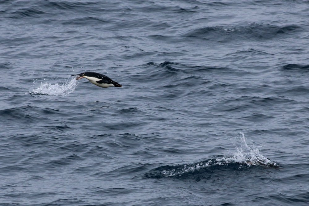 Adelie penguin diving into the water.