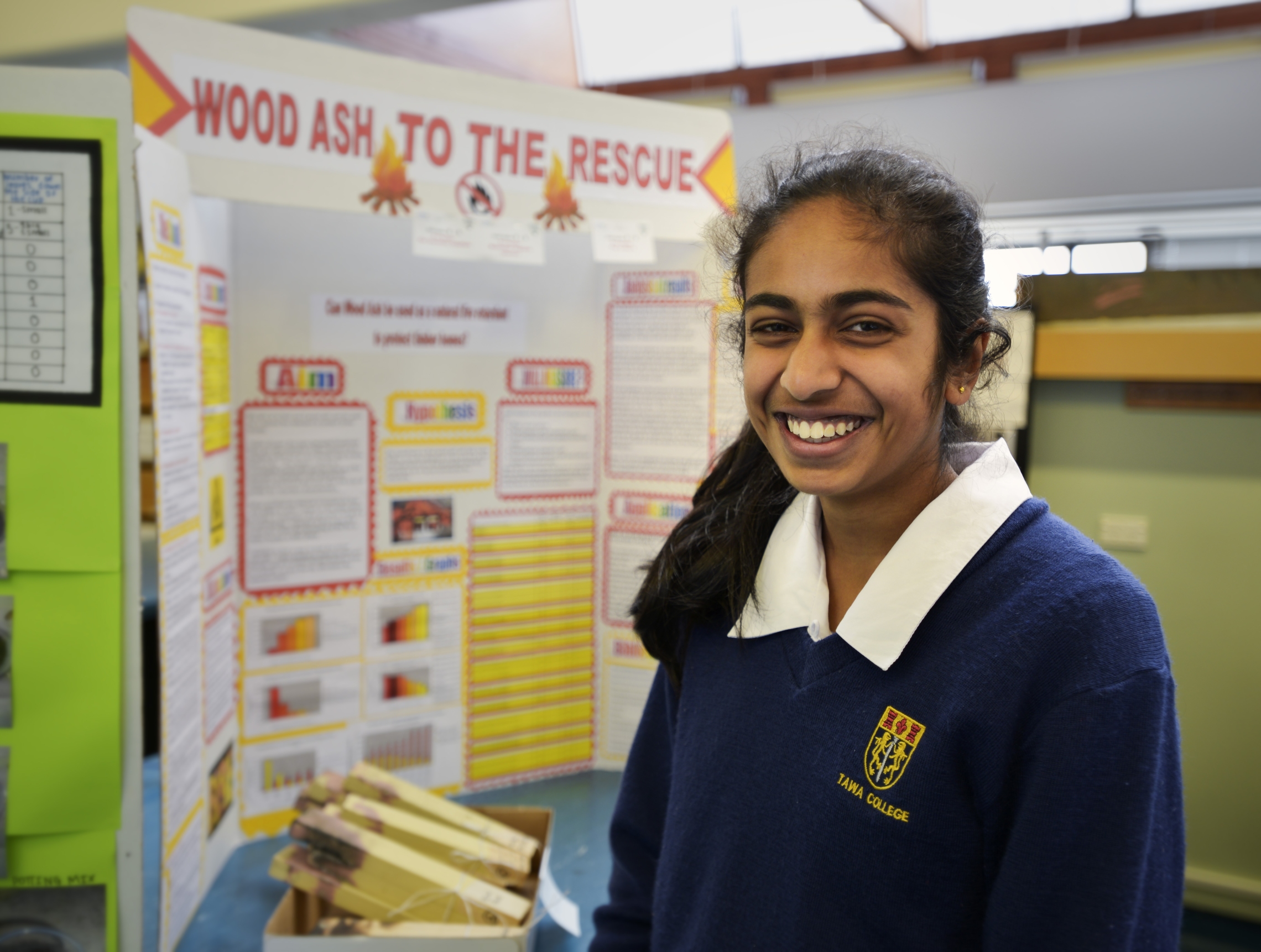 Adrina Venayagam from Tawa College was judged first in Class 4 (Year 10) for "Wood ash to the rescue". Credit: Dave Allen, NIWA