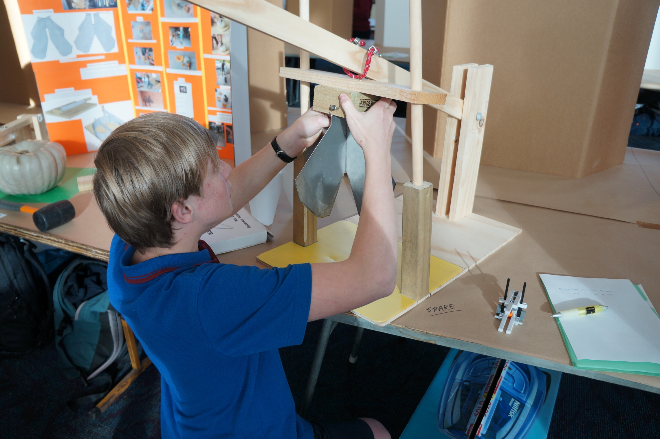 Alex Trask from Tauranga shows us his novel project, a kitchen tool that cuts pumpkin into 'workable chunks'.