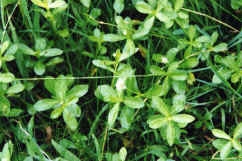 Alligator weed flowering. Reproduction is vegetative by the extension of prostrate stems or stem fragmentation. The floating fringe of marginal mats is also readily fragmented and dispersed. Seed set is unknown in New Zealand.