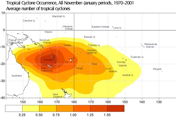 Tropical cyclone occurrence, all November-January periods.