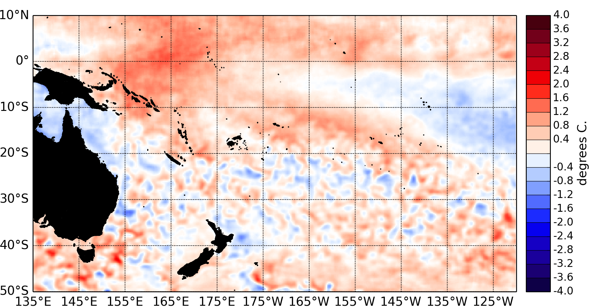 Surface temperature anomalies (ºC) for September 2014, data is from the NOAA OISST Version 2 dataset, available at the NOAA’s Climate Data Center (ftp://ftp.cdc.noaa.gov/Datasets/noaa.oisst.v2.highres/)