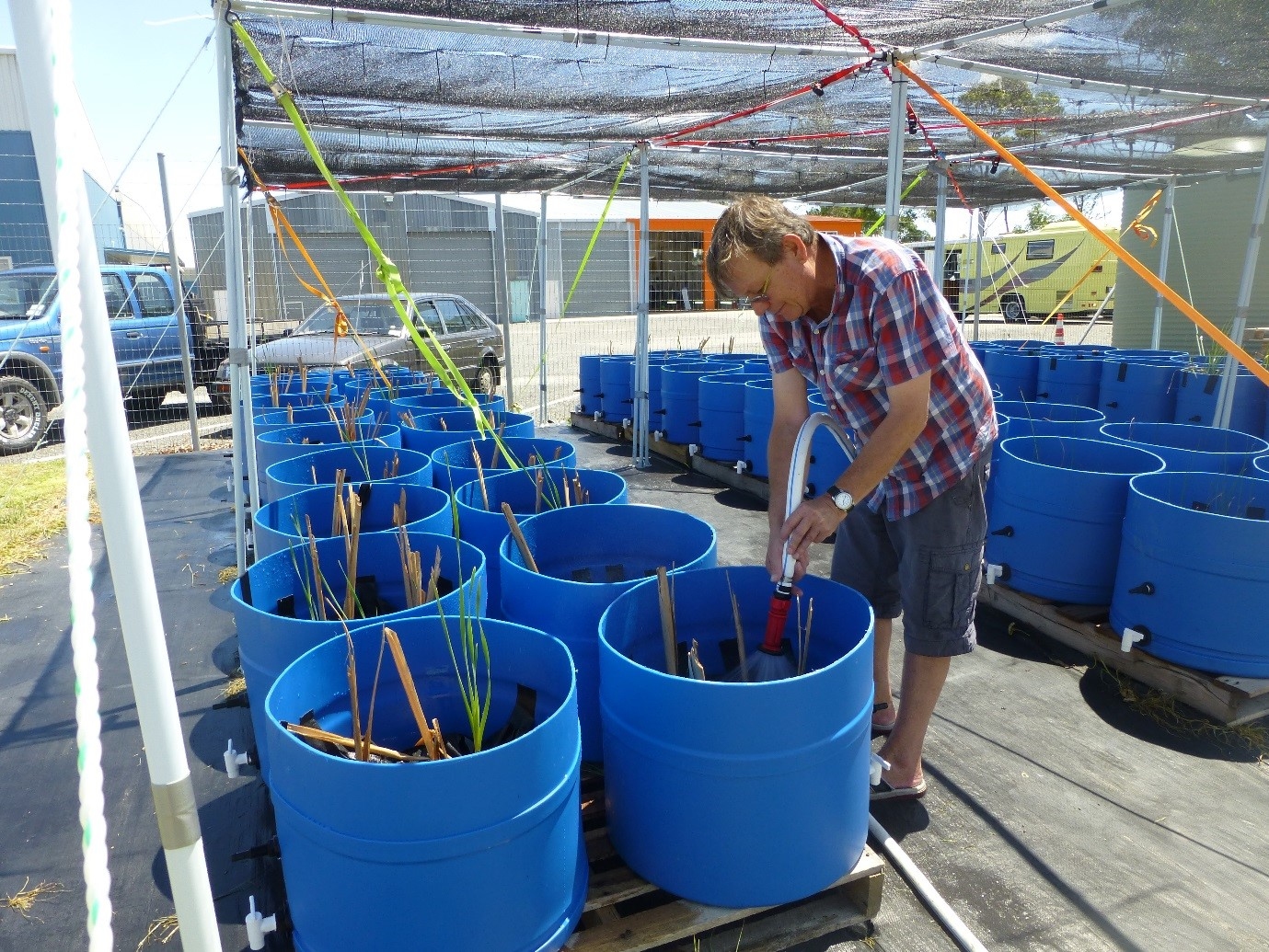Bevan Turnpenny, one of the keen tairawhiti/Gisborne wtag members, watering the establishing wetland plants for the upcoming Gisborne sludge treatment trials.