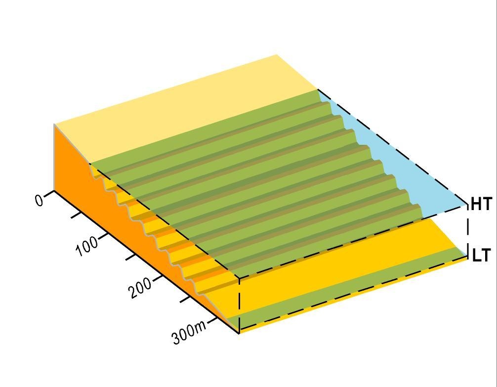 Reflective + ridged sand flat beaches have a moderate to steep, narrow, high tide beach, with shore parallel, sinuous, low amplitude, evenly spaced sand ridges extending out across the inter- to sub-tidal sand flats.