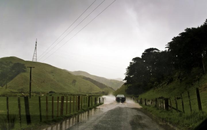 Blocked culvert causes flooding after heavy rain. Ohariu Valley, Wellington, 2012.