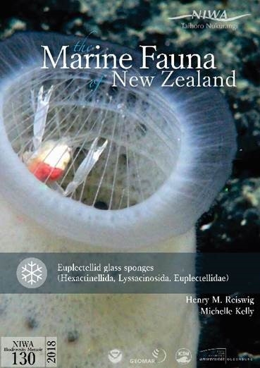 Front cover a NIWA Biodiversity Memoir: Reiswig, Henry Michael; Kelly, Michelle 2018. The Marine Fauna of New Zealand. Euplectellid glass sponges (Hexactinellida, Lyssacinosida, Euplectellidae). Wellington, New Zealand: National Institute of Water and Atmospheric Research (NIWA). (NIWA Biodiversity Memoir; 130)