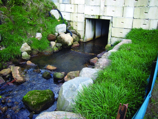 Box culvert improvements - boulders used to create pool access to culvert. Credit: NIWA