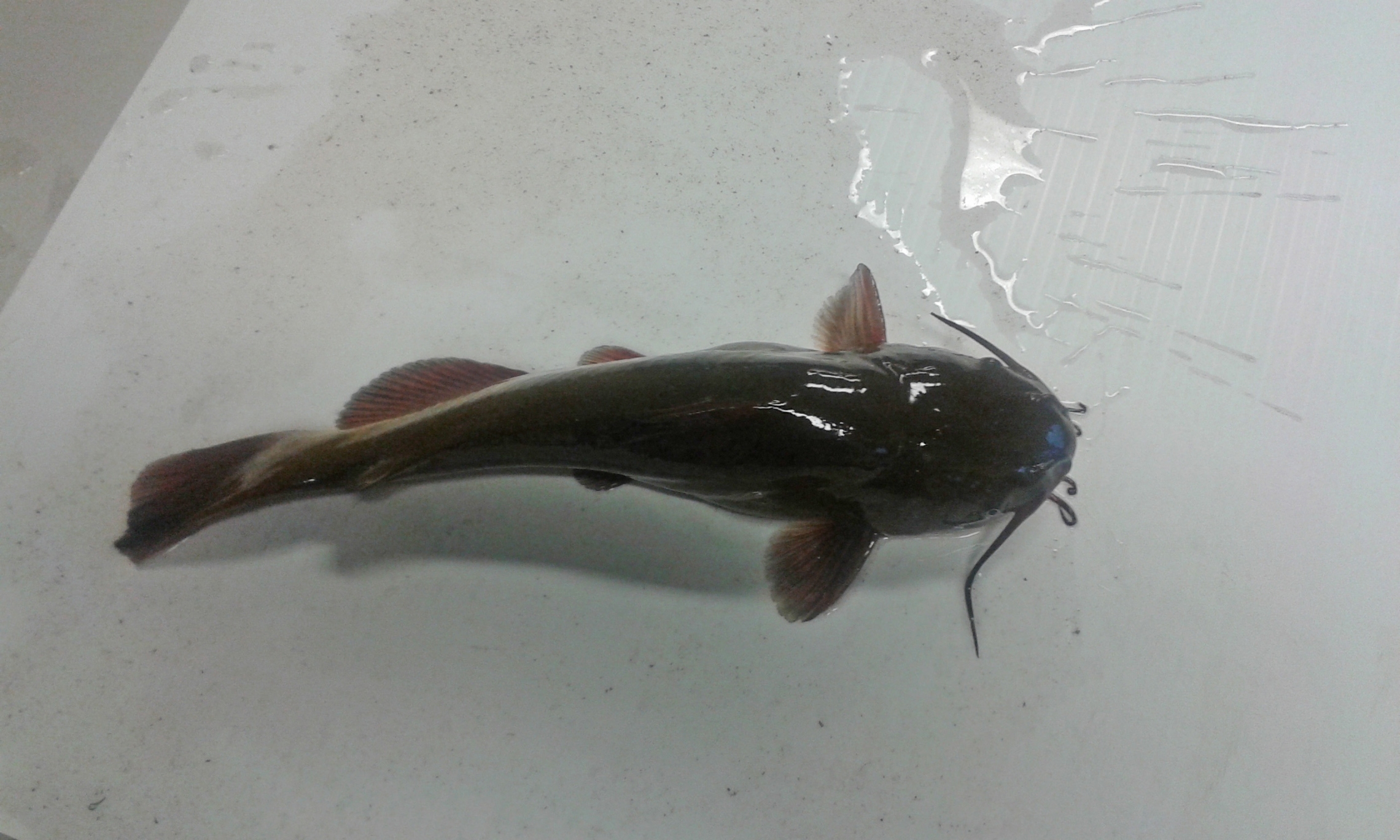 A Brown bullhead catfish. This species were Introduced to New Zealand in 1877 and are now abundant throughout the Waikato River system. They typically grow 23cm to 30cm in length and can lay thousands of eggs.