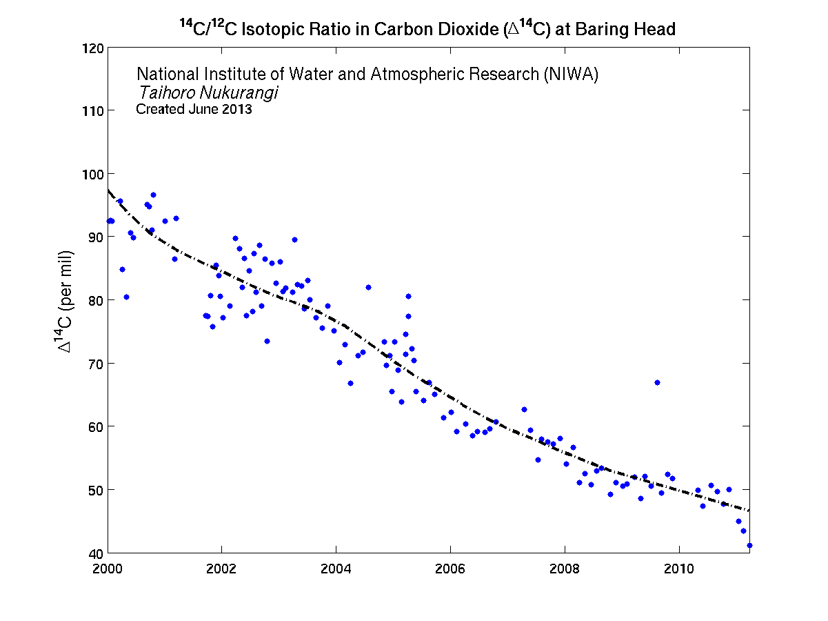 C14 in CO2 at Baring Head 2000 to Present June 2013