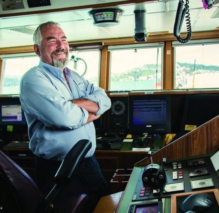 Captain Evan Solly on the bridge of the RV Tangaroa