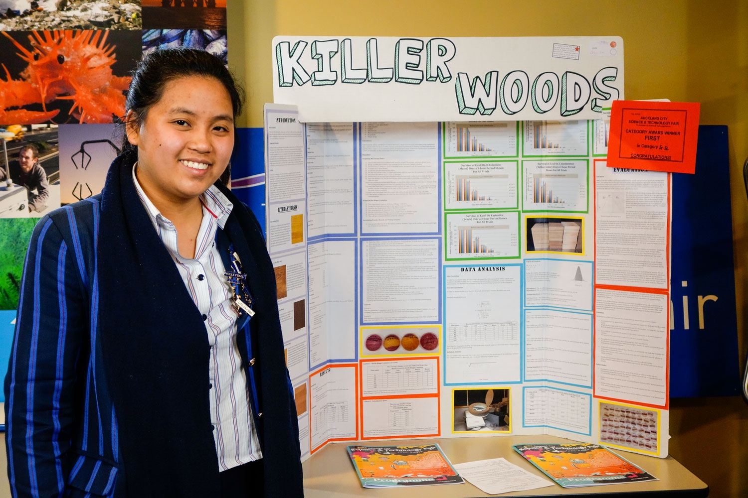 Carena Lai of Auckland Diocesan School for Girls was runner-up in the NIWA Auckland science fair for her project entitled Killer Wood which investigated the anti-microbial properties of chopping boards.