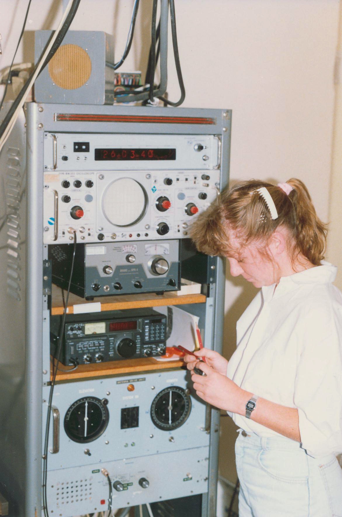 A technician checks the equipment recording the ozone data transmitted from the sonde.