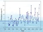 Chlorophyll-a concentrations at 2-3 week intervals since 1994.