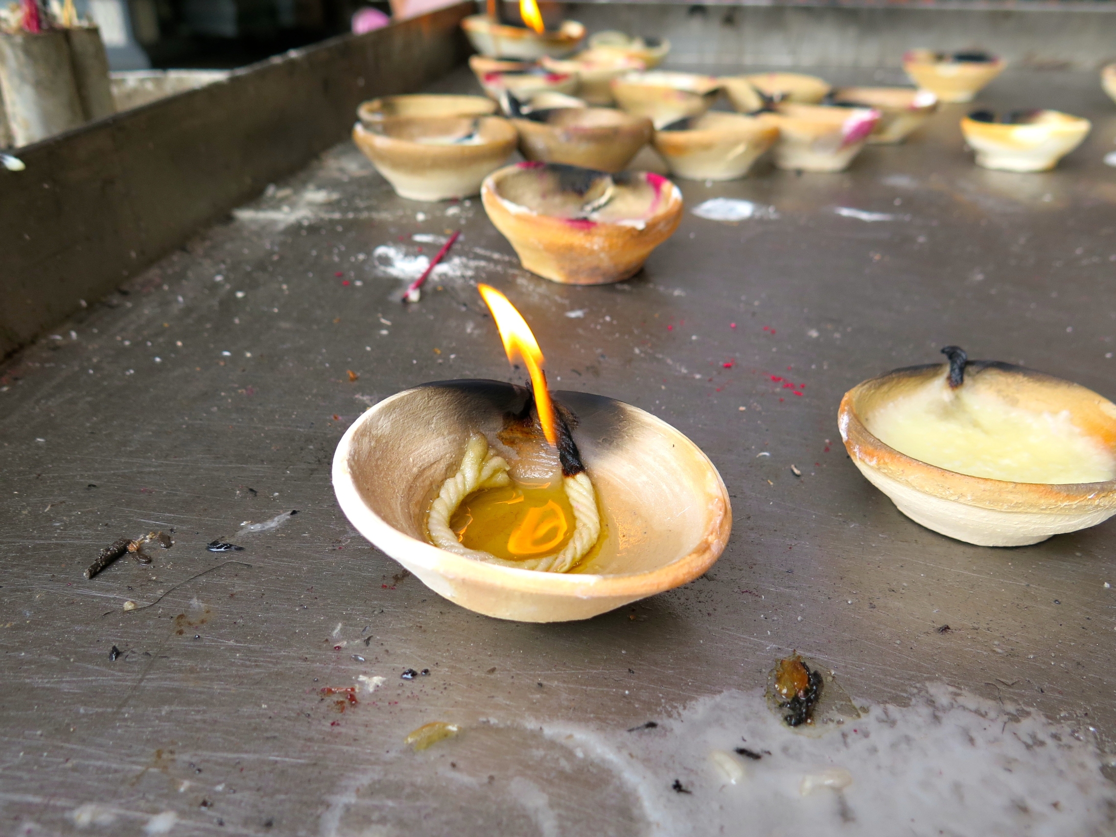 These clay oil burning lamps at a Hindu temple in Malaysia closely resemble a brachiopod valve. [Sadie Mills, NIWA.]