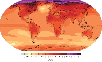 Projected surface temperature changes for the late 21st century (2090-2099) from the IPCC Fourth Assessment Report. You can see the original with a more detail explanation on the IPCC website.