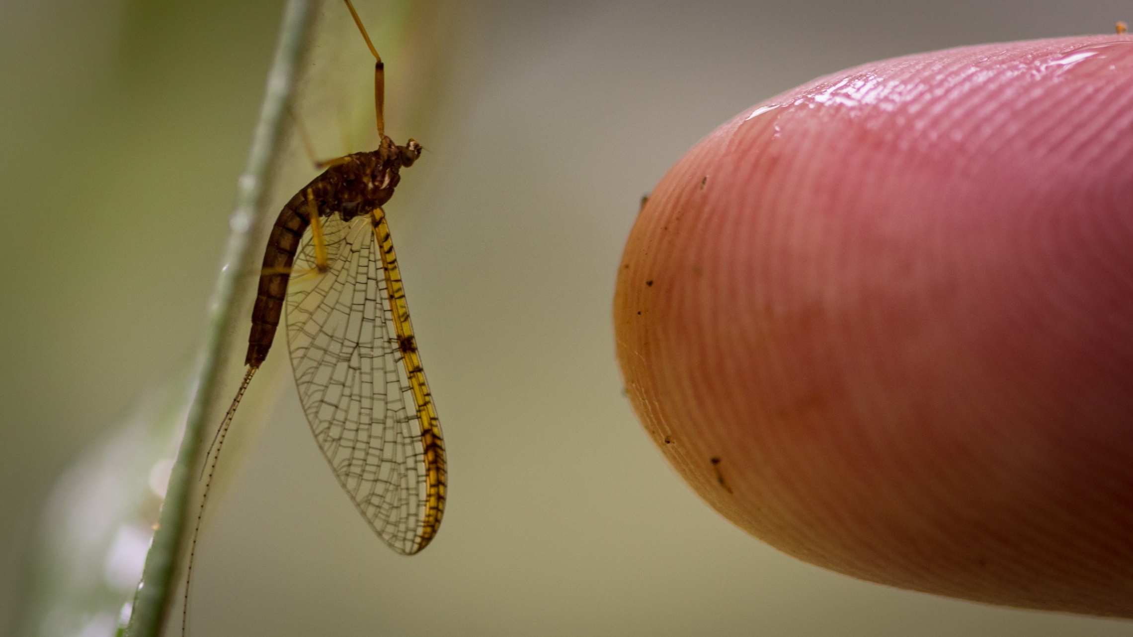Close-up of an adult mayfly.