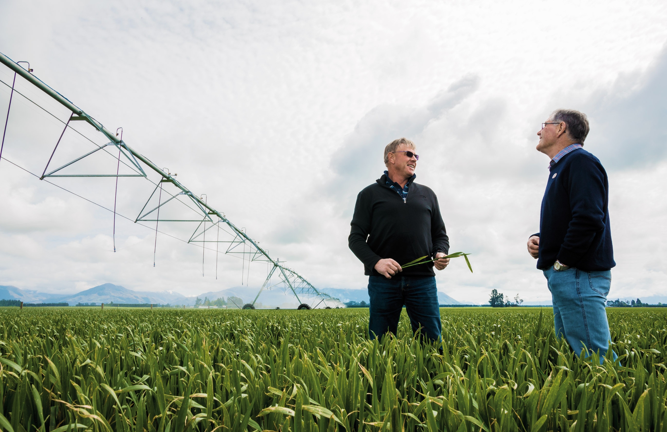 Craige Mackenzie (left) with NIWA Hydrologist Maurice Duncan on Craige's farm near Methven. Photography by Dave Allen on 23 October 2013.