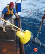 Crew member Tony Reiri launching a Carioca buoy. (Photo: Matt Walkington)