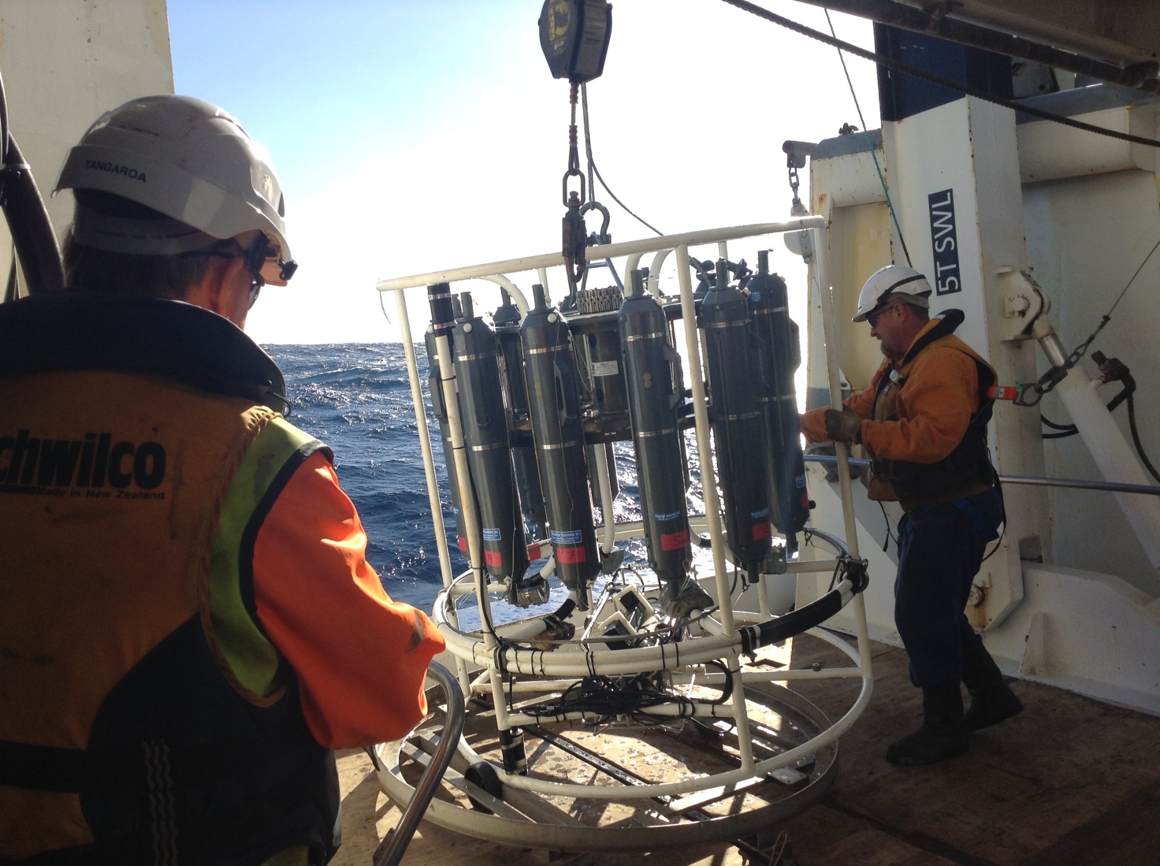 This is the CTD instrumentation being winched in by crew