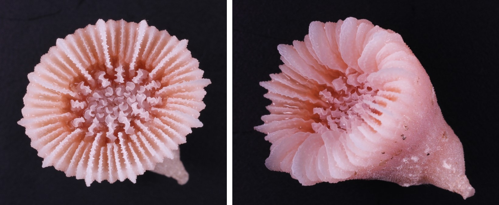 A beautiful and delicate cup coral, so far only identified as Caryophyllia sp., collected from the western flank of the Challenger Plateau, north-west off New Zealand, from a depth of ~840 m. It is only about 1.5 cm in diameter. [Peter ‘Chazz’ Marriott NIWA/ Oceans Survey 20/20 Challenger Plateau] Credit: Peter ‘Chazz’ Marriott NIWA/ Oceans Survey 20/20 Challenger Plateau.
