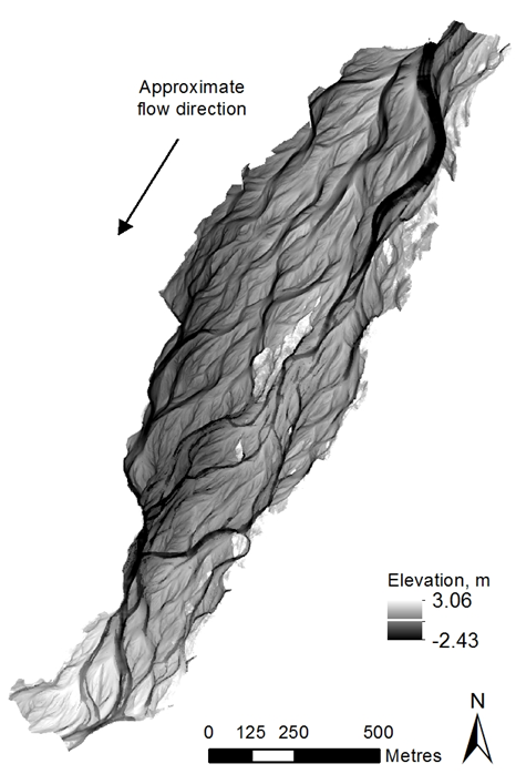 Figure 3. A de-trended DEM of the Rees River study reach, near Glenorchy.