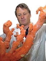 Dean Stotter holds a specimen of Paragorgia arborea.