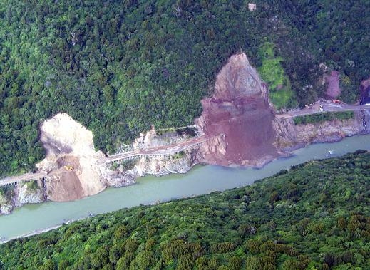 Large rock and debris slide in the Manawatu Gorge which blocked SH 3 for about 3 months after initial failure during the February 2004 heavy rainfall.