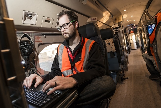 nCAR Instrument Engineer Nick Potts making pre flight checks to the Dropsonde system, Operation Deep Wave - NSF/NCAR High-performance Instrumented Airborne Platform for Environmental Research (HIAPER) aircraft.