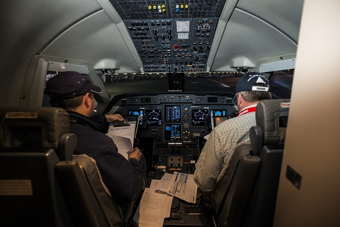 Pilots making pre-flight checks, Operation Deep Wave - NSF/NCAR High-performance Instrumented Airborne Platform for Environmental Research (HIAPER) aircraft.