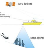 Diagram of mapping aquatic plants with GPS/echo sounder combination.