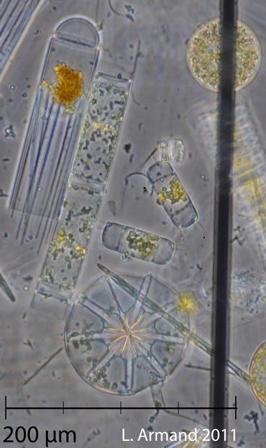 Diatoms under a microscope - Odontella weissflogii, Corethron pennatum, Corethron sp., Asteromphlaus hookeri, Thalssiosira spp.