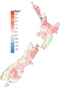 Difference from the average air temperature in degrees Celsius for December 2003. (Click to enlarge)