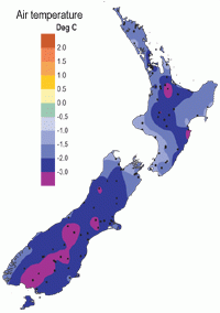 Difference from average air temperature in degrees Celsius for December 2004. (Click to enlarge)