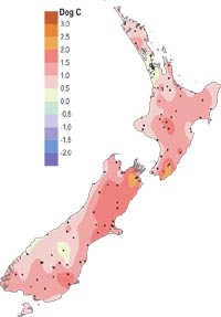 Difference from the average air temperature in degrees Celsius for January 2004. (Click to enlarge)