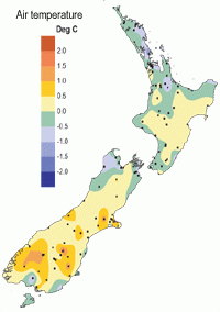 Difference from average air temperature in degrees Celsius for January 2005. (Click to enlarge)