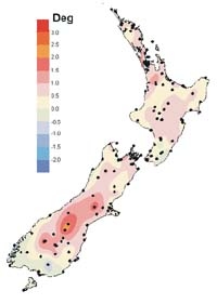 Difference from the average air temperature in degrees Celsius for May 2002. (Click to enlarge)